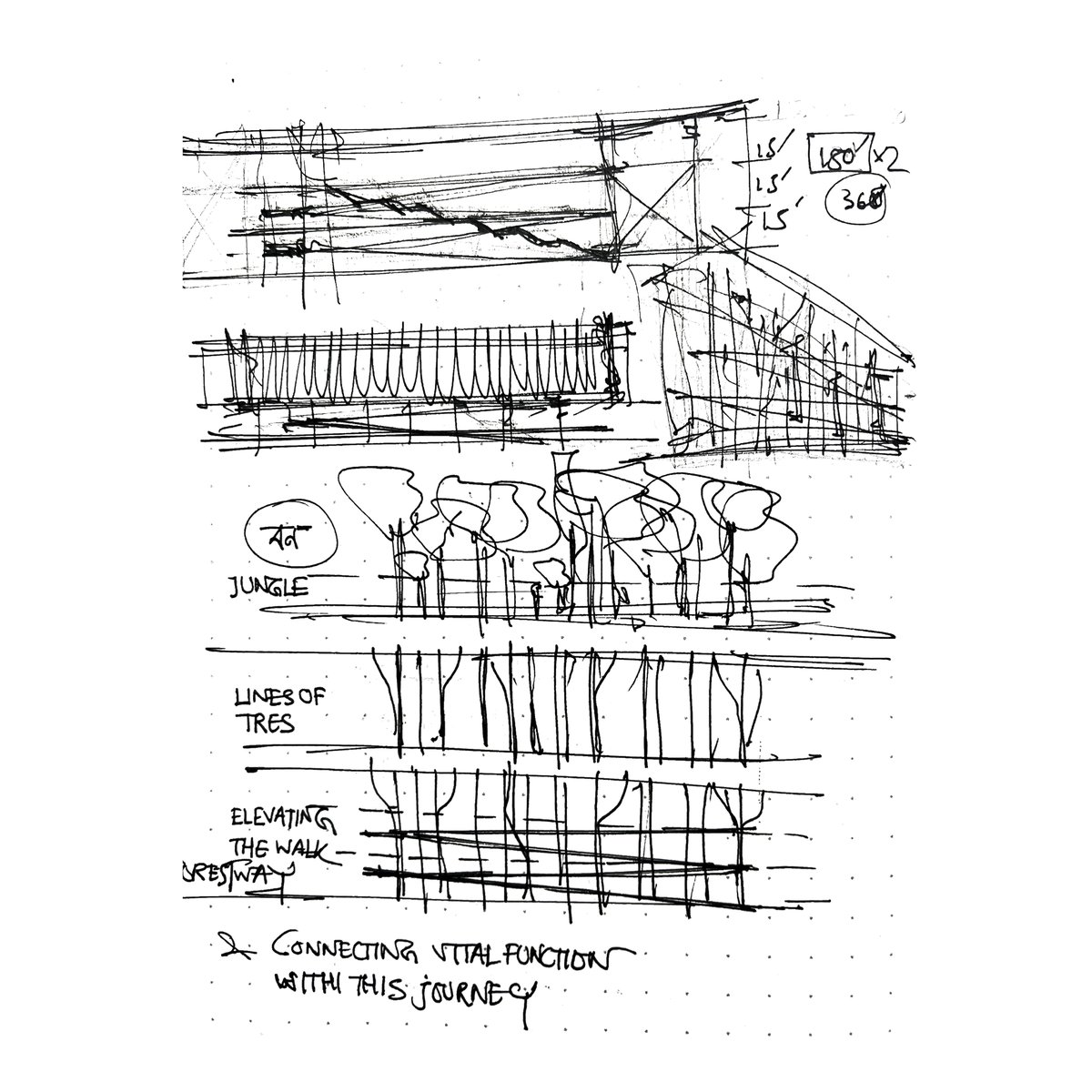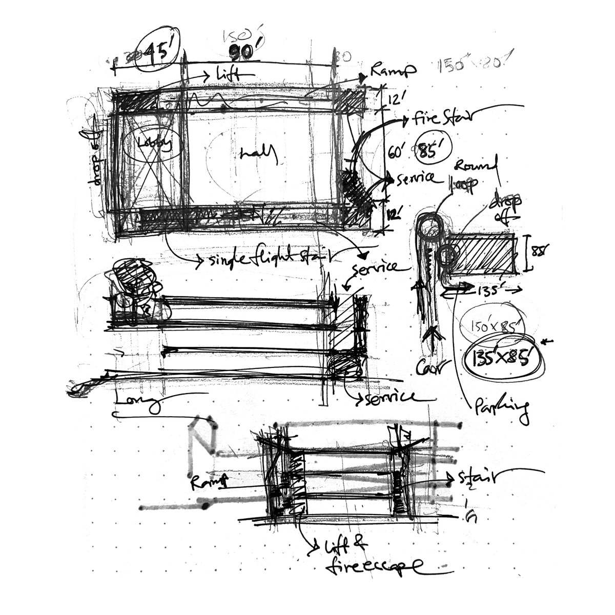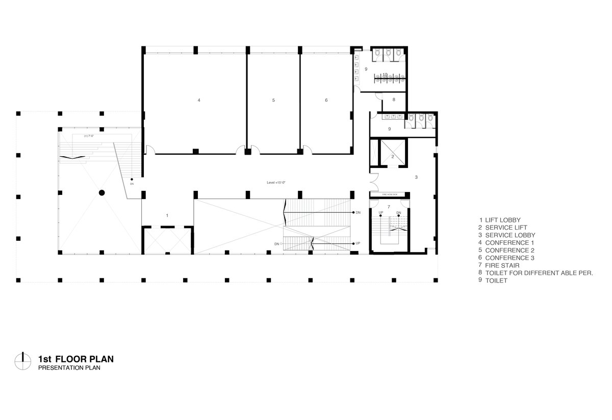 With the lake and a jungle existing within the north, there is a degree of peace and tranquility in the area. In order to reflect all the natural fauna and to allow the users to have a view from every point, the entire exterior was made to be transparent. In order to keep the transparency, the exterior has a deep double height colonnade that not only holds a large terrace on top, but allows for deep shading to the users. The terrace is green and is accessible to all, letting the users have a respite especially during long functions. Taking advantage of an existing ditch, the lobby also has a water feature that allows another interaction with the water. The main color scheme is white and gray, with the portions in white highlighting the structure and gray tones that blend in with the background giving a nice visual contrast.