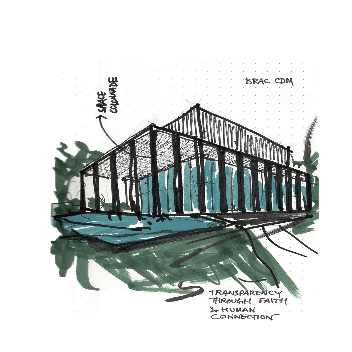 As one of the world’s largest non-profit organizations, BRAC is a name that is known to most people. Being internationally recognised and always striving to find ways to reach out and help more of the people, BRAC often finds itself hosting many events that allow for like minded people to gather. Hence why BRAC commissioned a convention center that is capable of hosting a large number of people for any function alongside having dining facilities. The location is within an existing BRAC training center in Rajendrapur and has an already existing configuration of facilities, like a central kitchen and staff accommodation. Therefore, in order to not disrupt the configuration, the site for the convention was selected to be on the east of an existing lake and slightly isolated from the rest.