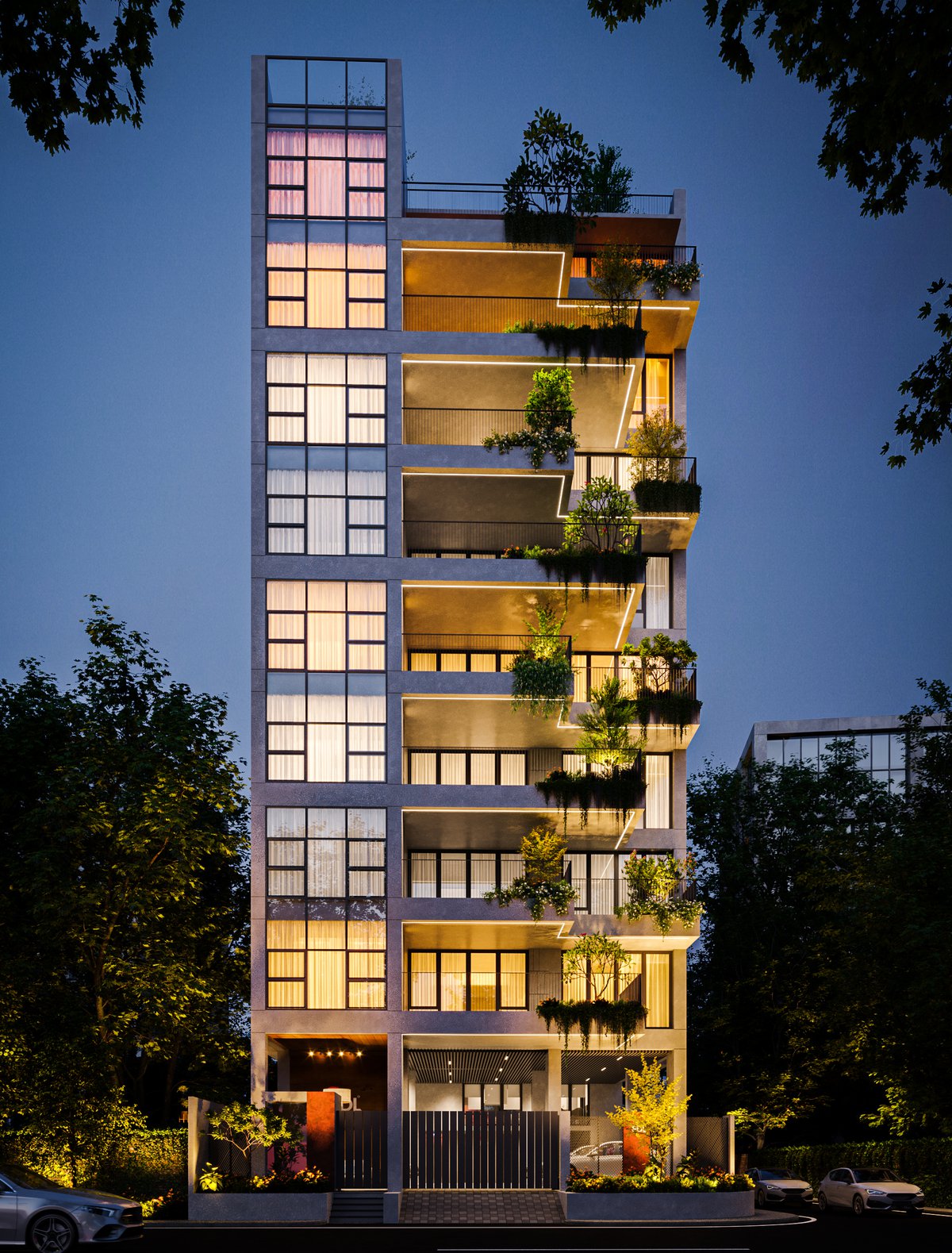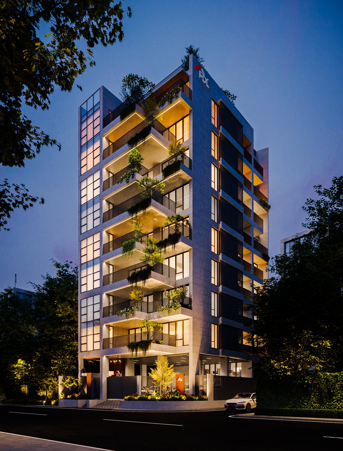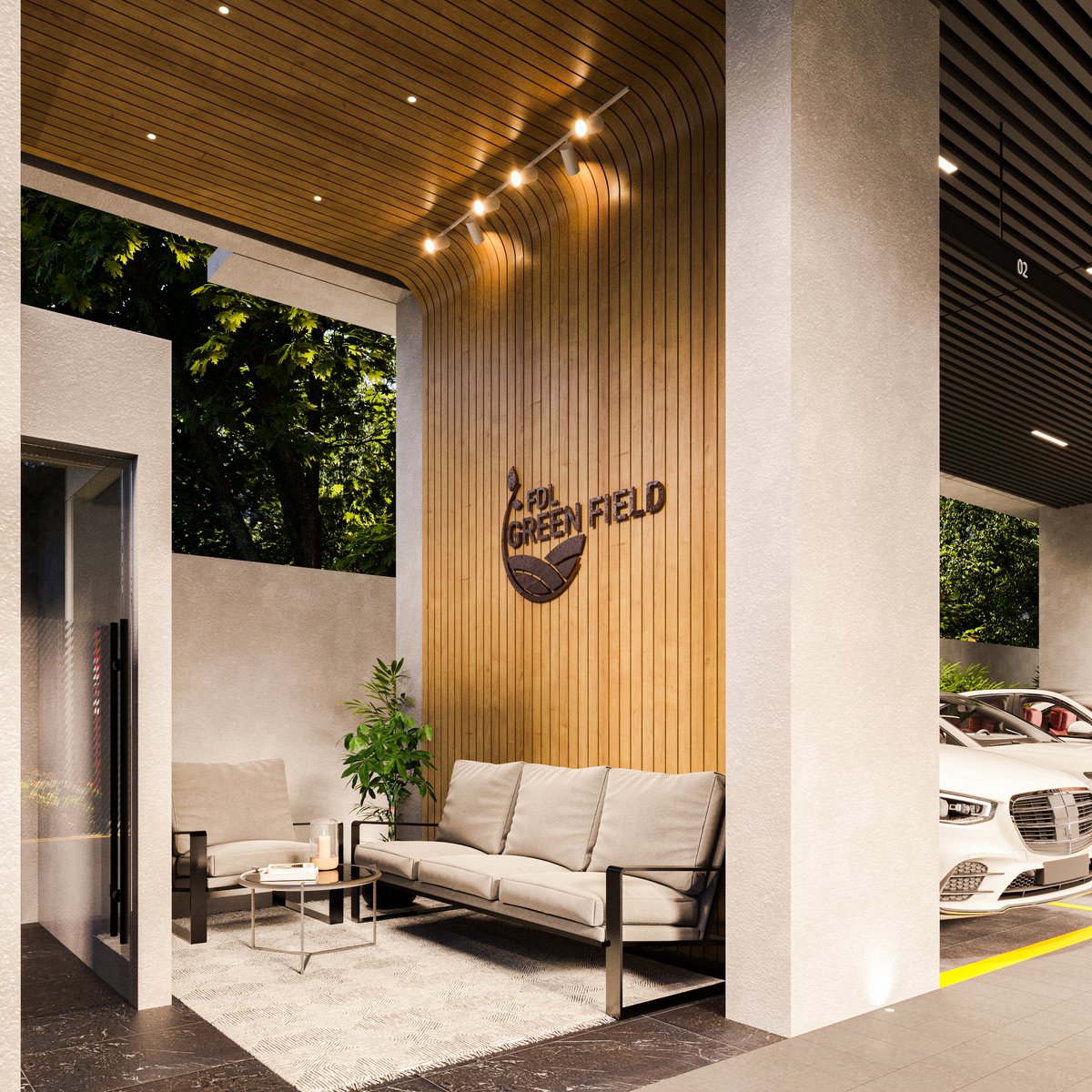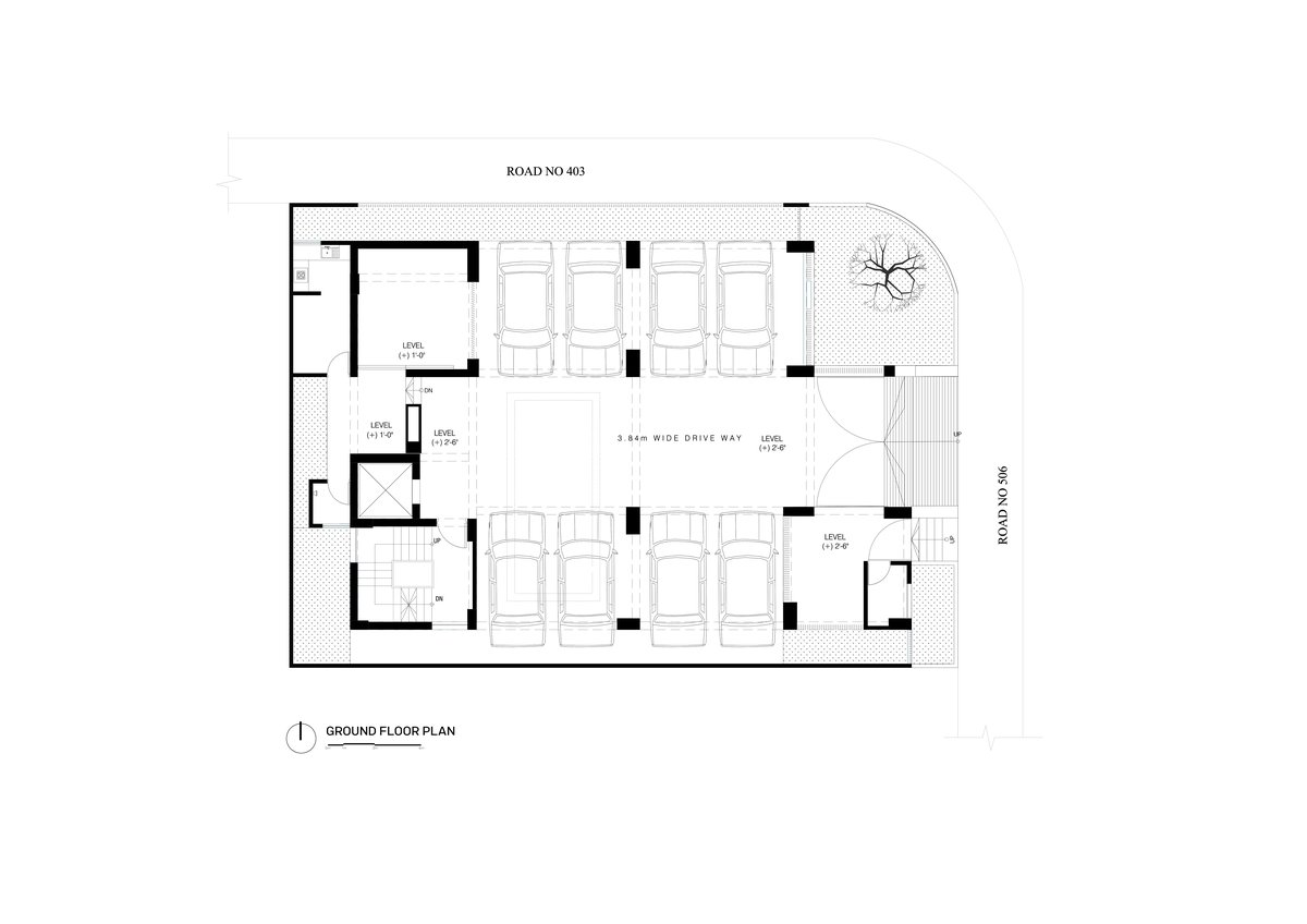 FDL Greenfield is a thoughtfully designed single-family residence located on a prime corner plot in Jolshiri Abashon, where contemporary architecture meets everyday comfort. The multi-storied home incorporates a mezzanine level dedicated to community-oriented activities, enriching the social dimension of the residence. A defining feature is its terrace overlooking the road intersection, complemented by an alternating double-height spatial experience achieved through the strategic placement of verandas, allowing light, air, and visual connectivity to flow seamlessly throughout the home. Organized into three bays, the central bay functions as a vibrant public zone, while the surrounding bays ensure privacy with well-positioned bedrooms. Blending openness with intimacy, FDL Greenfield embraces modern living through efficient spatial planning, natural illumination, and a refined architectural language that enhances both functionality and lifestyle quality.