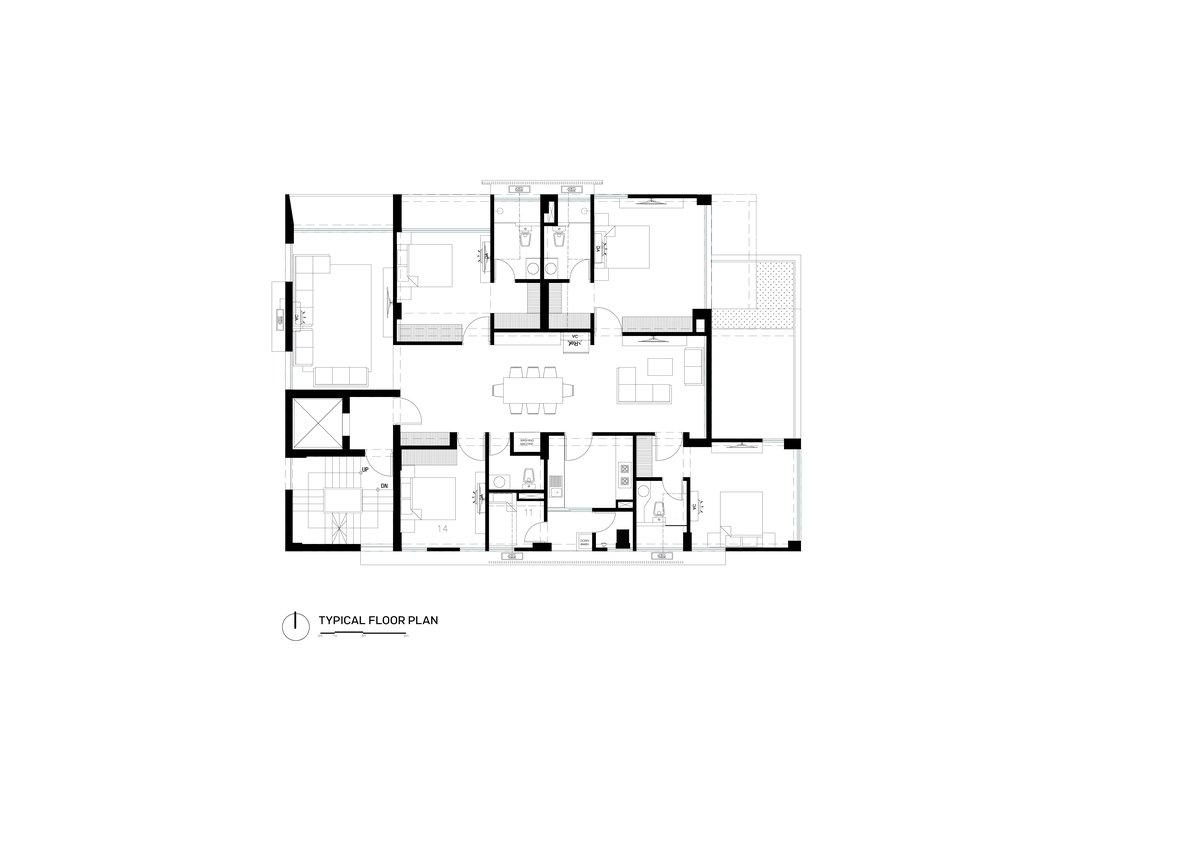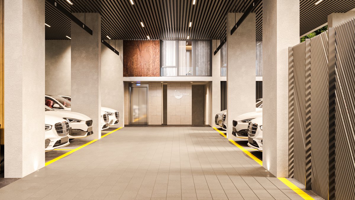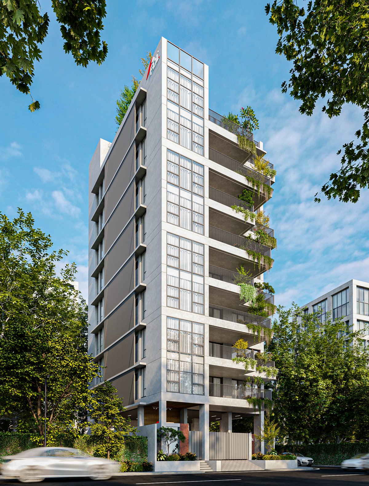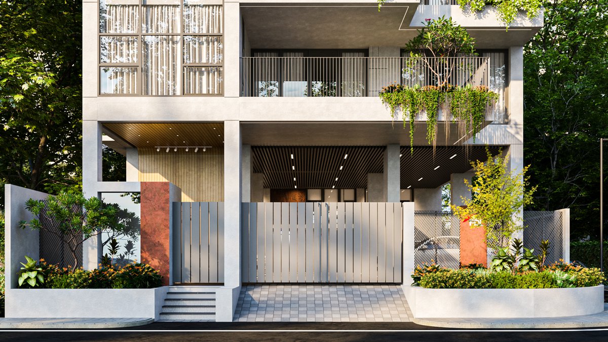 FDL Greenfield is a thoughtfully designed single-family residence located on a prime corner plot in Jolshiri Abashon, where contemporary architecture meets everyday comfort. The multi-storied home incorporates a mezzanine level dedicated to community-oriented activities, enriching the social dimension of the residence. A defining feature is its terrace overlooking the road intersection, complemented by an alternating double-height spatial experience achieved through the strategic placement of verandas, allowing light, air, and visual connectivity to flow seamlessly throughout the home. Organized into three bays, the central bay functions as a vibrant public zone, while the surrounding bays ensure privacy with well-positioned bedrooms. Blending openness with intimacy, FDL Greenfield embraces modern living through efficient spatial planning, natural illumination, and a refined architectural language that enhances both functionality and lifestyle quality.