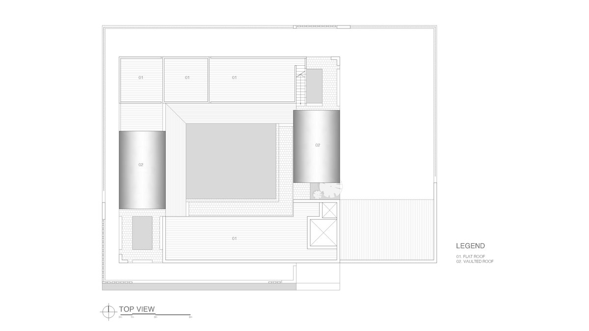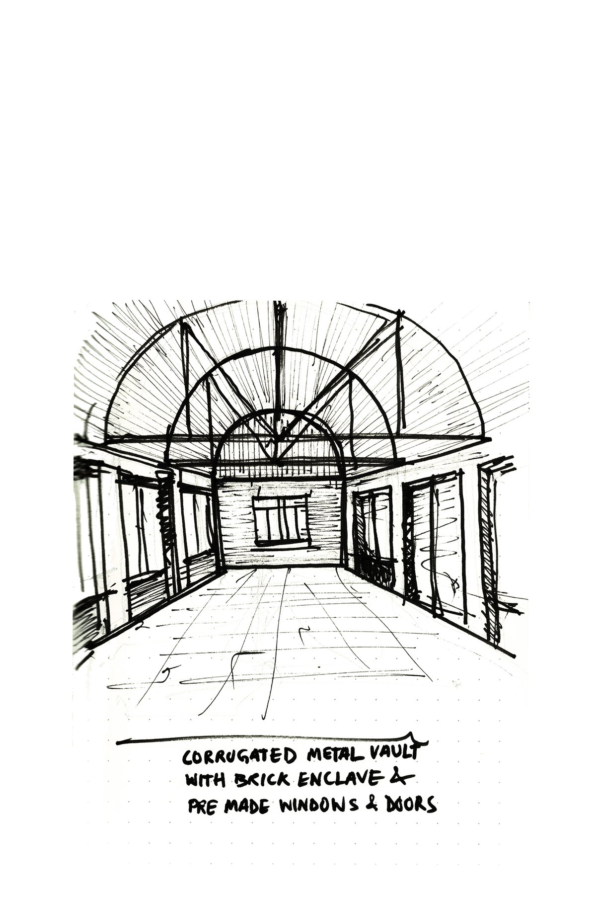 With the location of the site being close to a mahogany forest, climatic consideration was a significant factor in design. A vaulted tin roof is used for the living and dining rooms in order to find the best way to utilize the sunlight entering through a deeply shaded forest area. While most of the residence uses brick which is a climatically suitable choice, the vault roof uses tin as a way to respect the rural surroundings. The residence uses a central courtyard that acts as the main gathering point for the client’s family and to amplify the familial interactions. The theme of the household being a way to safeguard memories and emotions, so a majority of the design decisions were based on this.